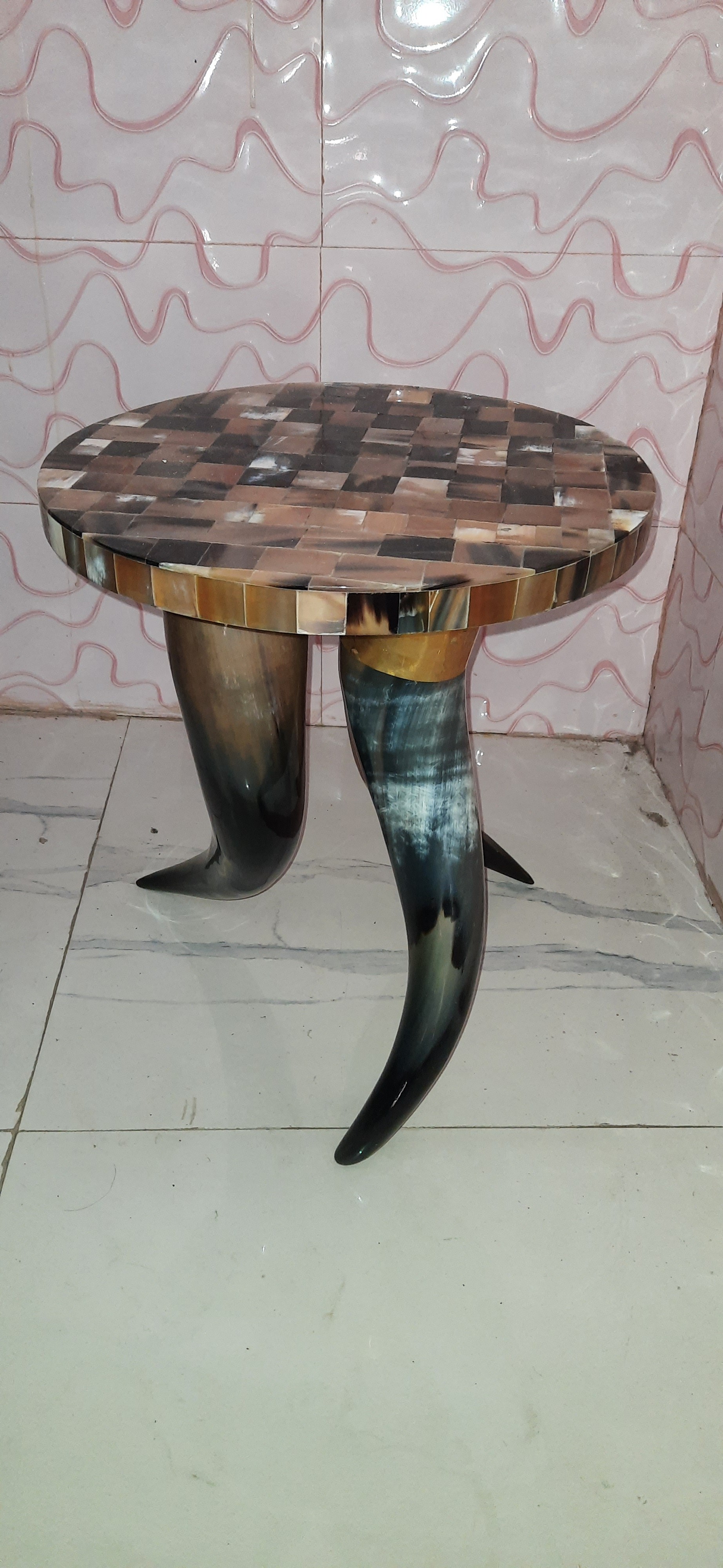 28 - HORN AND WOOD DECORATIVE SIDE TABLE DECORATIVE HORN AND WOOD DECORATIVE SIDE STOOL