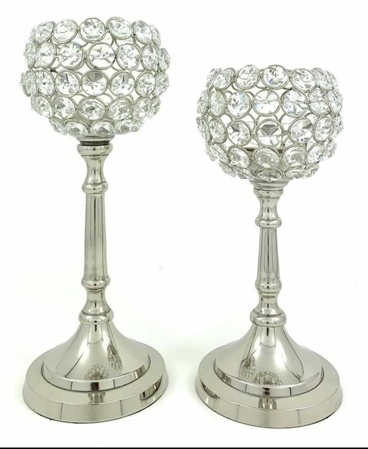 62 - CANDLE HOLDER ALUMINIUM AND CRYSTAL CANDLE HOLDER WITH SILVER NICKLE FOR HOME DECORE