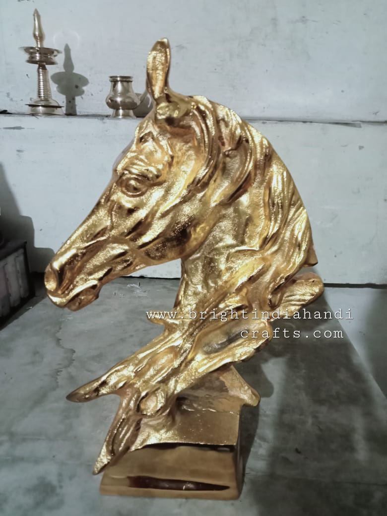 63 - HORSE SKULL CAST ALUMINUM HORSE SKULL WITH BRASS PLATED FOR HOME DECORE