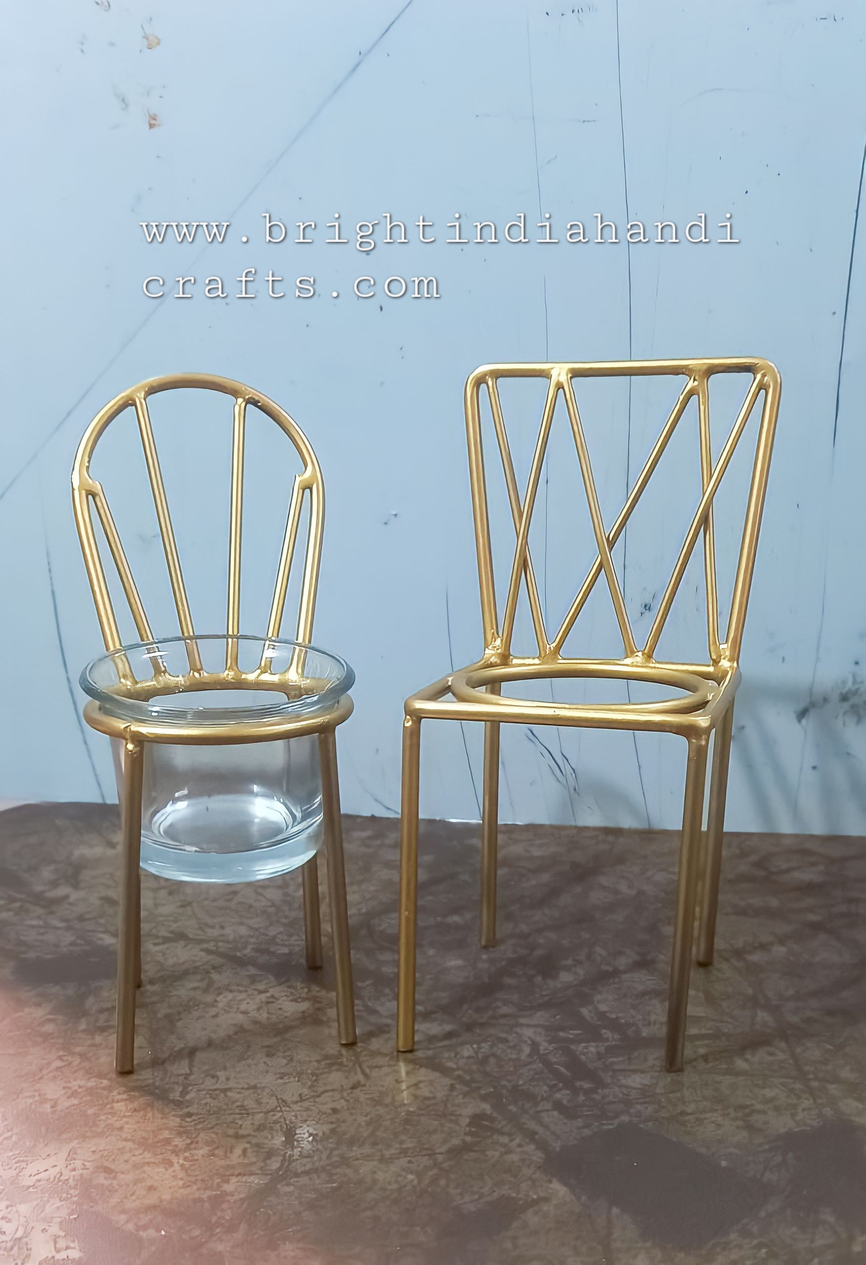 67 - CANDLE T-LIGHT IRON T-LIGHT,GOLD PLATED, CHAIR STYLE WITH GLASS