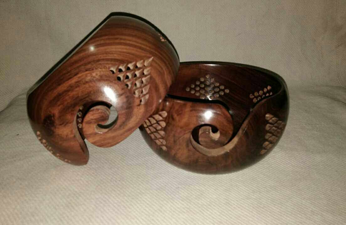 70 - YARN BOWL WOOD YARN BOWL WITH WALNUT FINISH