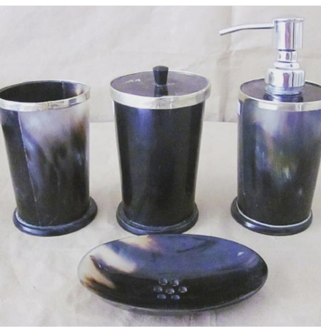 29 - BATHROOM SET HORN AND WOOD BATHROOM SET